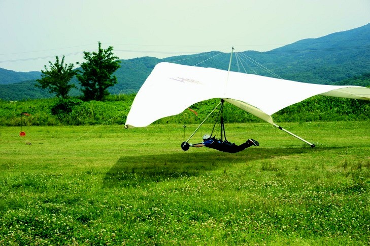 鳥コンパイロット 2024.05.092025.12.04 自作滑空機のパイロット養成 毎年夏に琵琶湖で開催される鳥人間コンテスト等で、自作滑空機を作って飛ばす皆さんのためのコースです。機体の設計・製作と同じく重要なのがパイロットの技量です。しかし、素晴らしい機体を作っても、鳥コン用の一品ものの機体を実際に飛ばして練習することはほぼできません。i-Hangのシステムを使えば、ハンググライダーを使って実践的な練習ができます。横揺れしない仕組みにした機体をウィンチで引っ張って飛ばすので、パイロットは速度コントロールに専念できます。この動作を体で覚えたパイロットは、水面スレスレを巧みなコントロールで、安全に距離を伸ばせるようになります。2022年にこの練習に参加した「チームあざみ野」は優勝。「飛ん女の会」は翌年の大会で準優勝しました。